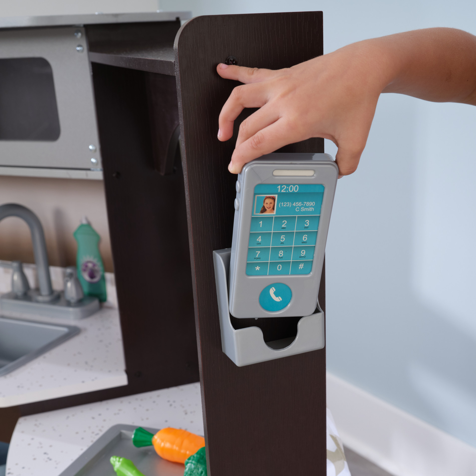 Detaliile bucatariei au fost finisate cu o atentie sporita, iar datorita caracteristicilor interactive, aceasta bucatarie va fi un cadou perfect pentru orice mic bucatar.
