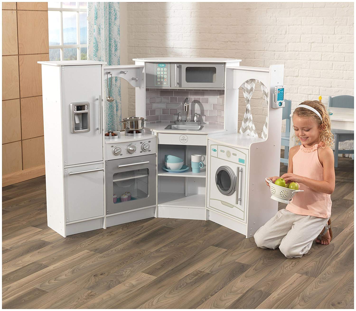 Bucataria de joaca copii KidKraft Ultimate Corner Play Kitchen cu sunete si lumini (Culoare Alb)