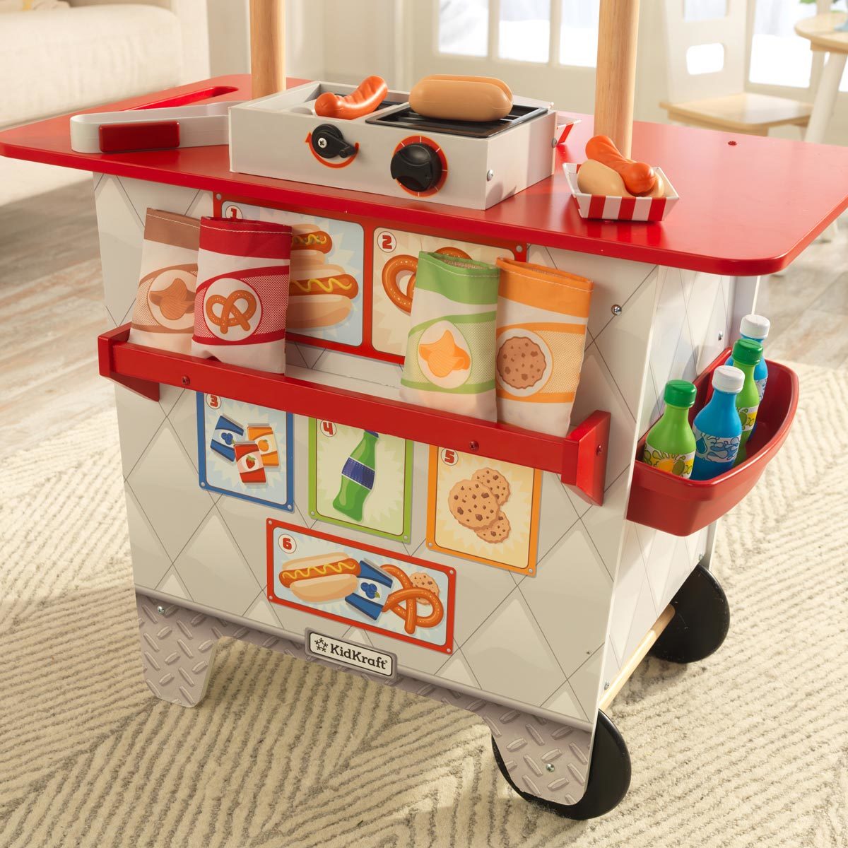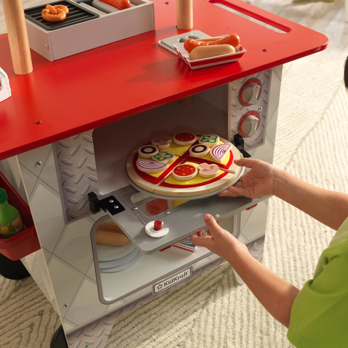 Bucatarie Mobila cu roti - Fast Food Stand mobil - Snack Stand cu 54 de accesorii, Hot-Dog, Pizza, Kidkraft