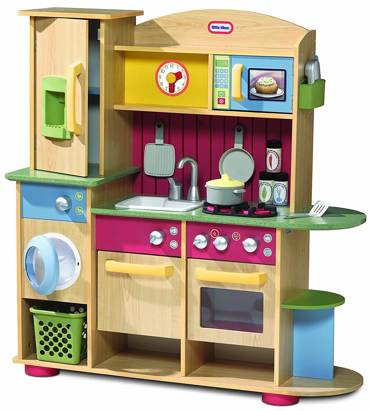 Bucataria Premium Little Tikes este o bucatarie din lemn completa, cu accesorii incluse, plina de detalii amuzante, inspirate din bucatariile reale (ex.: telefon fara fir, tabla de scris pentru ofertele speciale din fiecare zi, etc.).