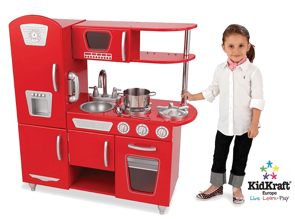 Bucatarie Kidkraft Red Retro ideala pentru fetite si baieti. Acest design clasic este mereu la moda si foarte cautat. Cu toate caracteristicile si facilitatile, va oferi multe ore de distractie, timp de invatare si joaca.