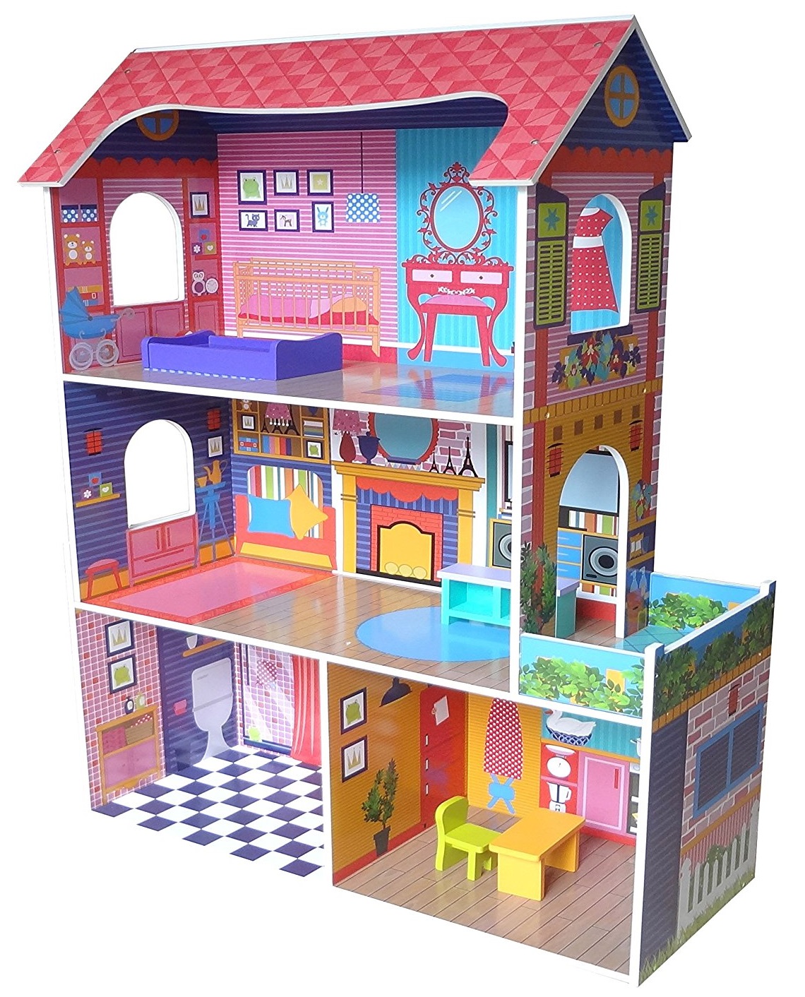 PRODUS: Casuta de papusi Tall Town DollHouse din lemn cu 3 etaje si mobilier