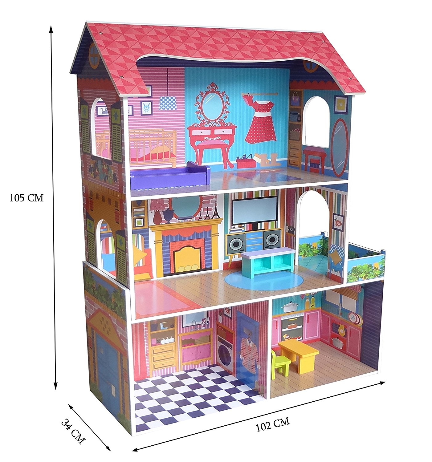 Casuta din lemn pentru papusi Tall Town DollHouse este o casuta foarte generoasa ca si dimensiuni avand 1,05 m inatime si 1.02 m latime.