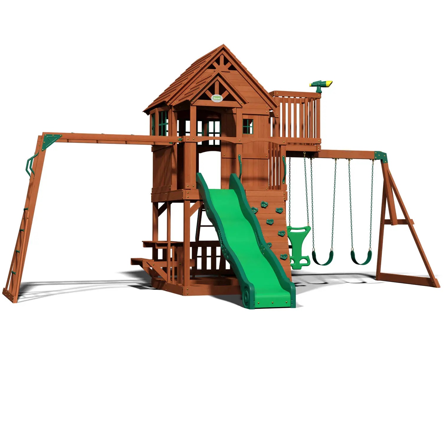 Produs: Complex de Joaca din cedru SkyFort II Wooden Swing Set - Centru cu tobogan si 3 nivele - Backyard Discovery