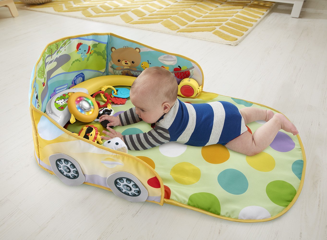 Produs: Centru de activitati masinuta decapotabila 3 in 1 Car Gym Fisher-Price - salteluta cu 8 jucarii diferite si 30 de minute de muzica si lumini