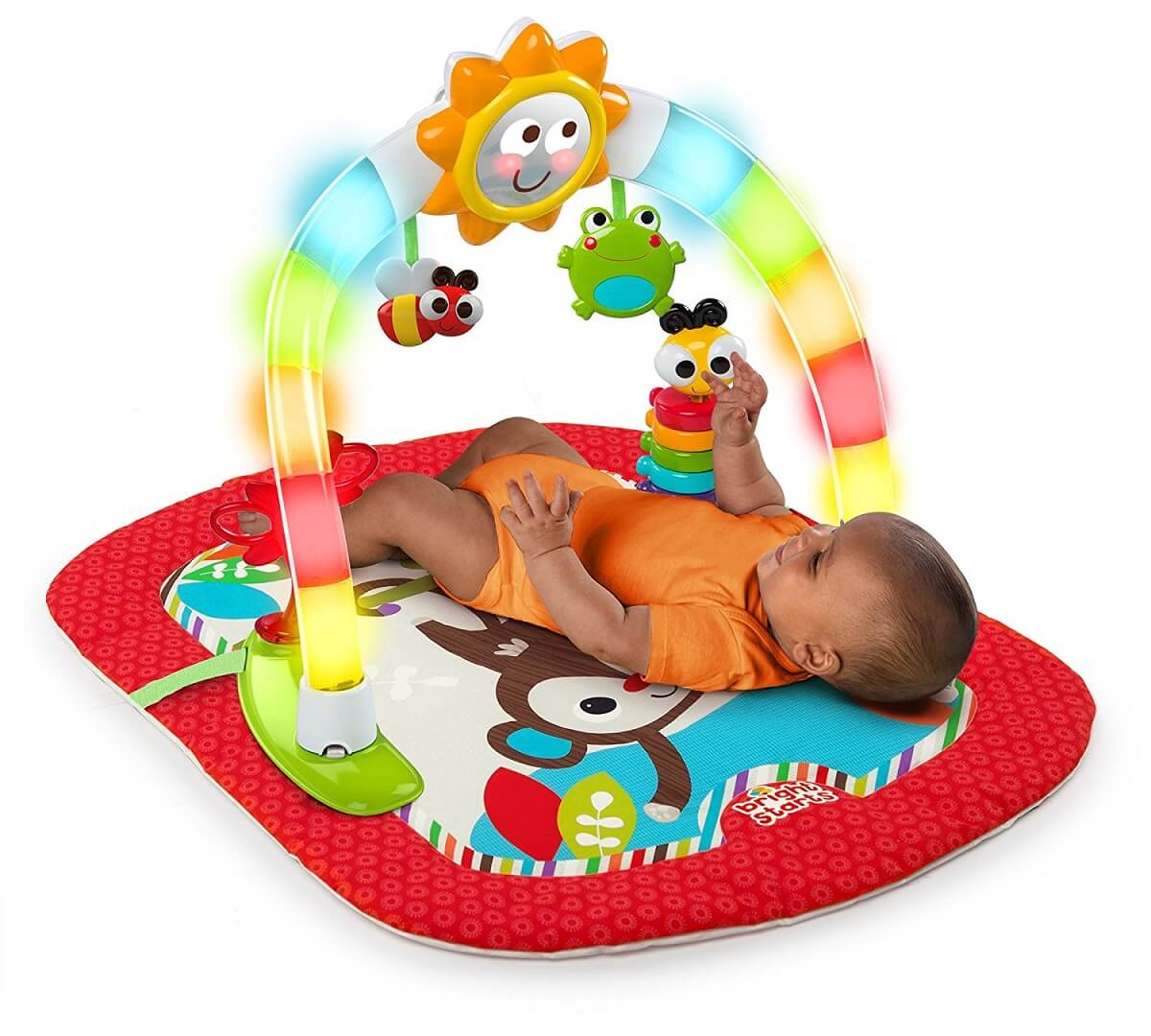 Centru de joaca cu activitati 2 in1 Bright Starts Lights Activity Gym RED cu salteluta, lumini si sunete
