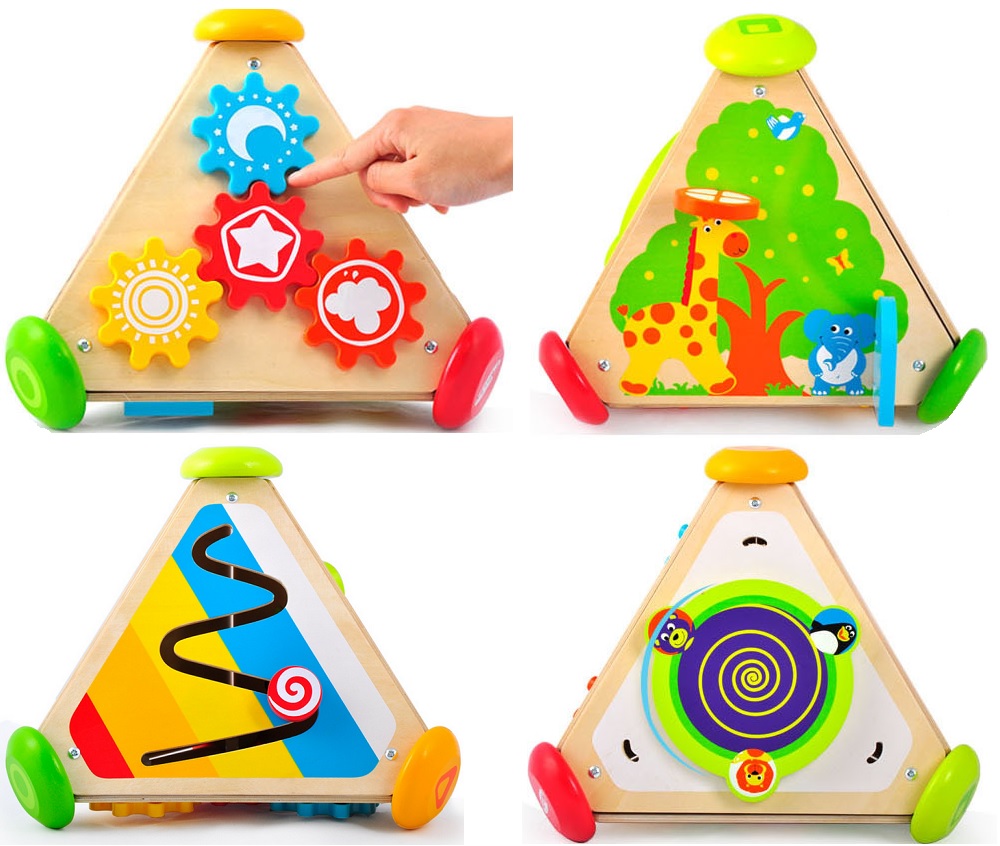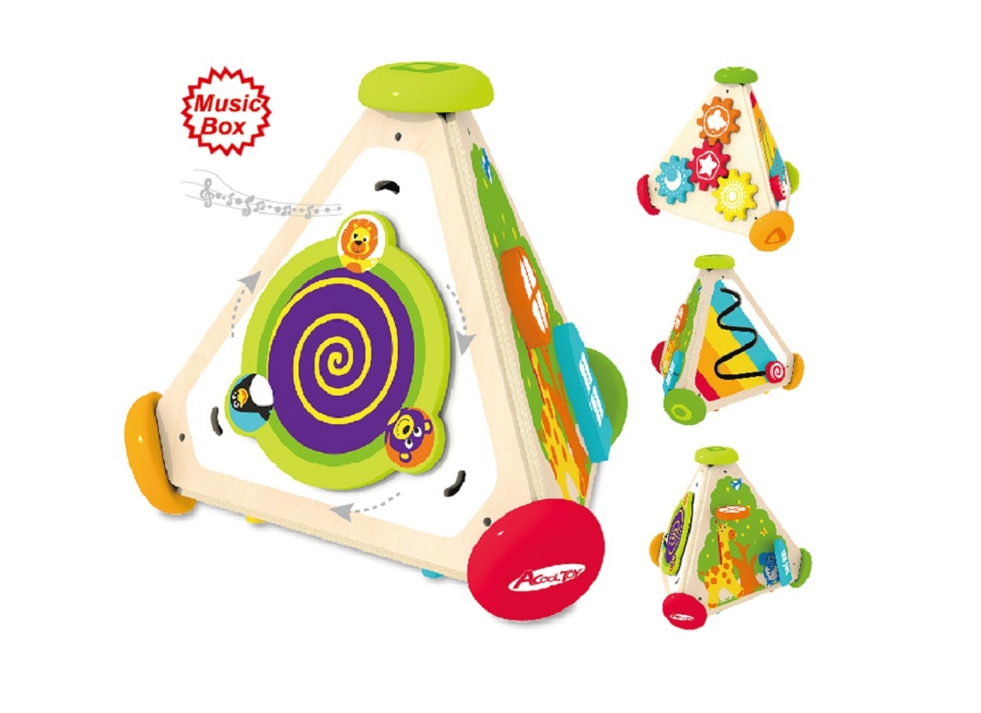 PRODUS: Cub de joaca triunghiular - prisma, muzical, multifunctional cu 4 fete din lemn, 4 in 1.