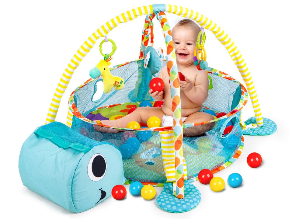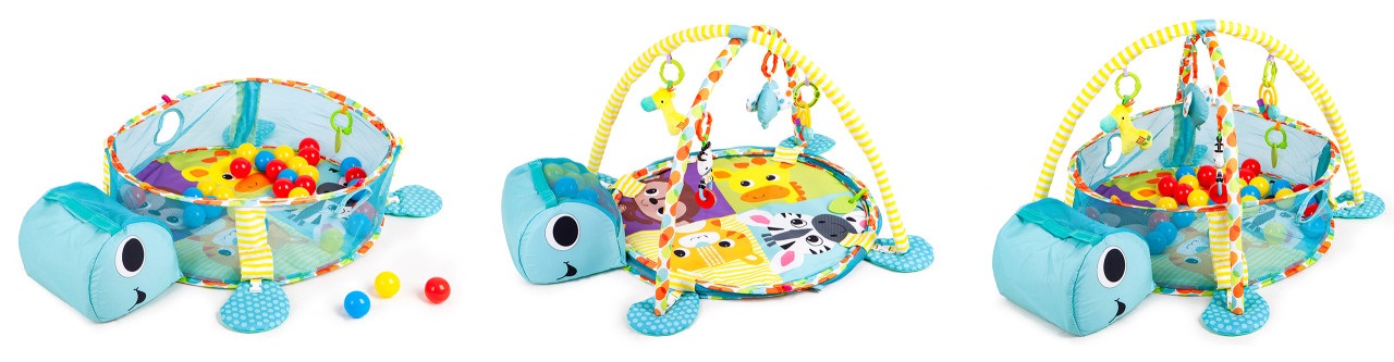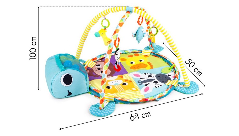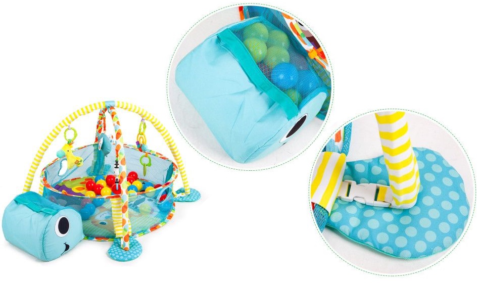 Capul broaștei țestoase servește drept ascunzătoare pentru bile colorate, setul cu covor include 30 de bile care vor face distracția tuturor celor mici mai plăcută.