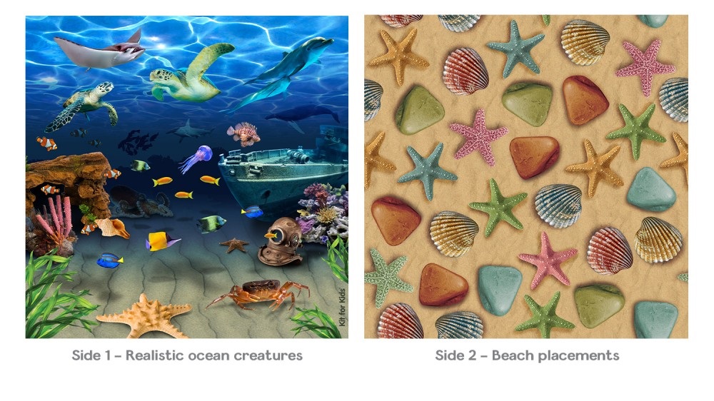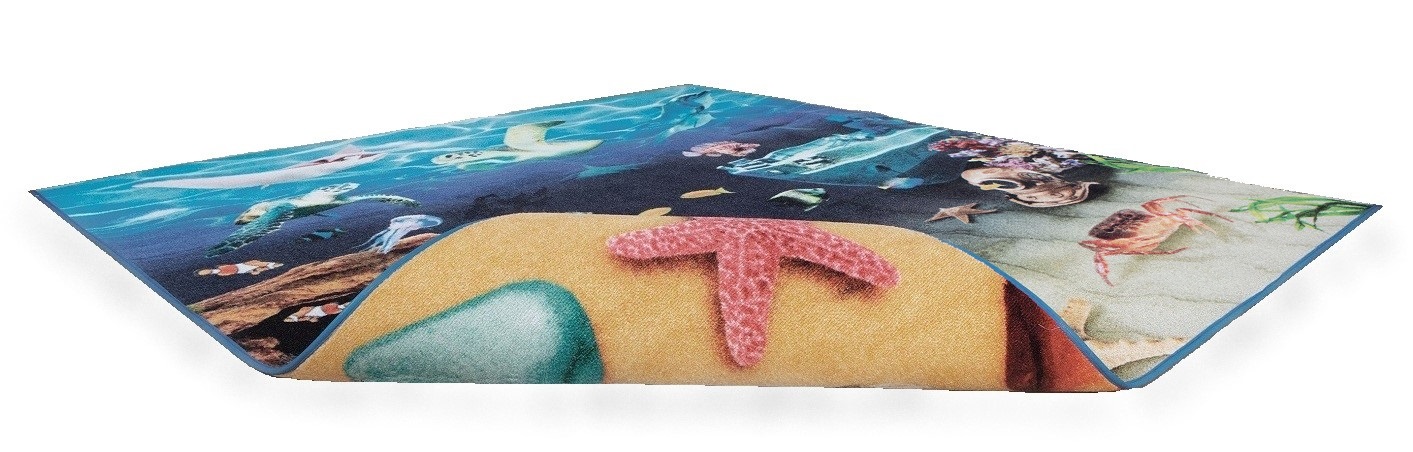 Covor Copii 2 in 1 cu doua fete Peisaj Subacvatic Marin si Plaje cu Scoici - Under The Sea