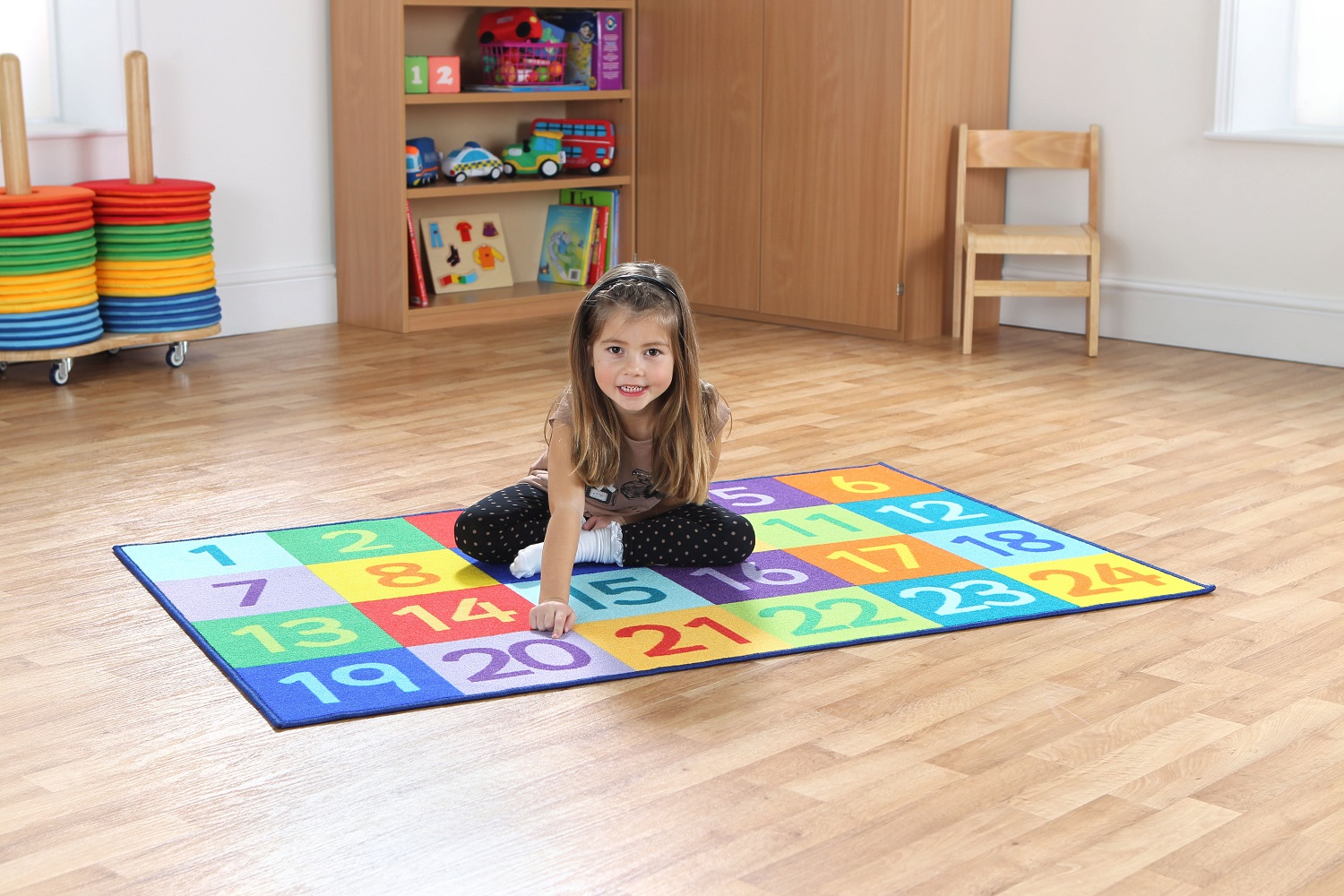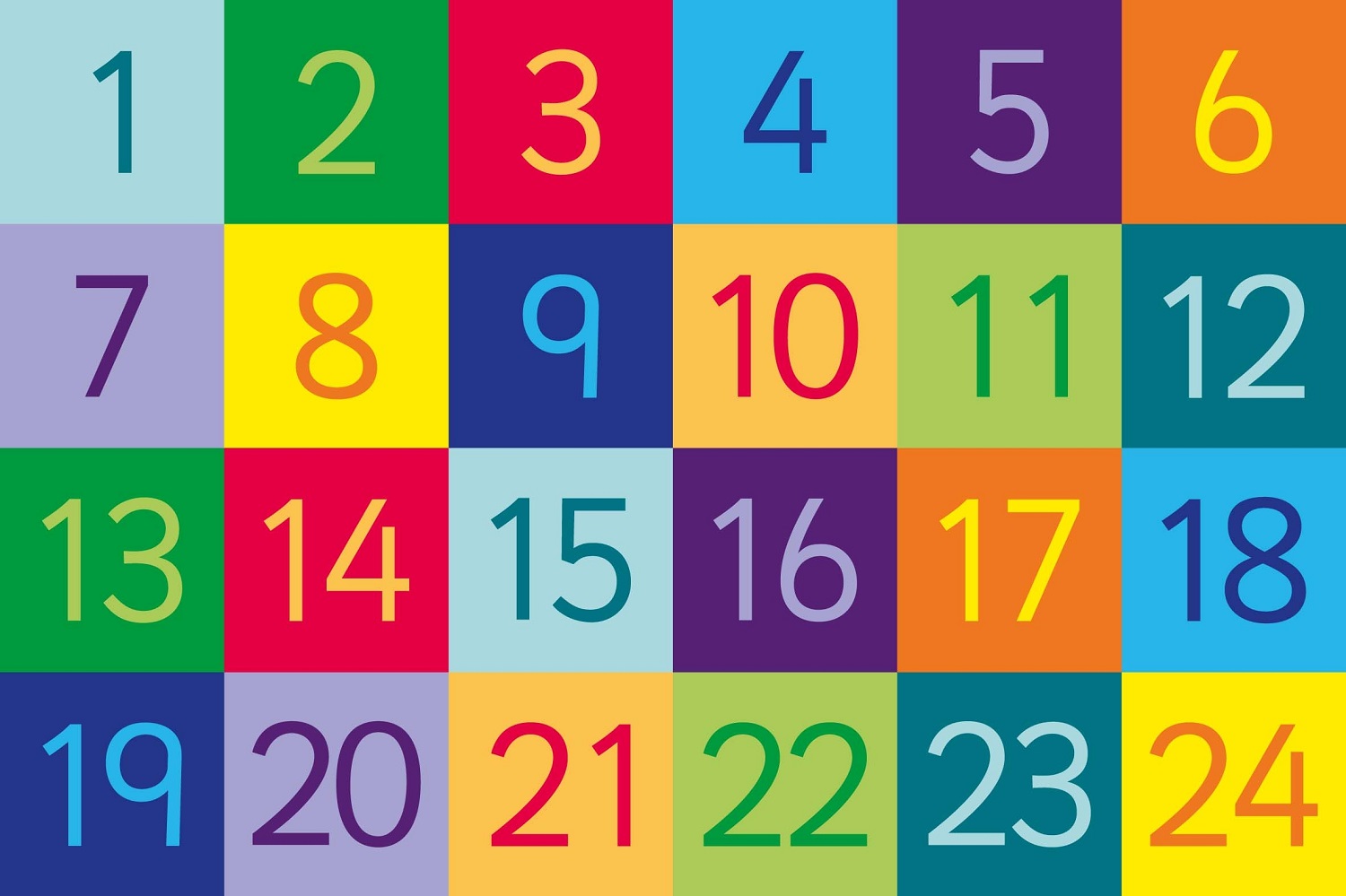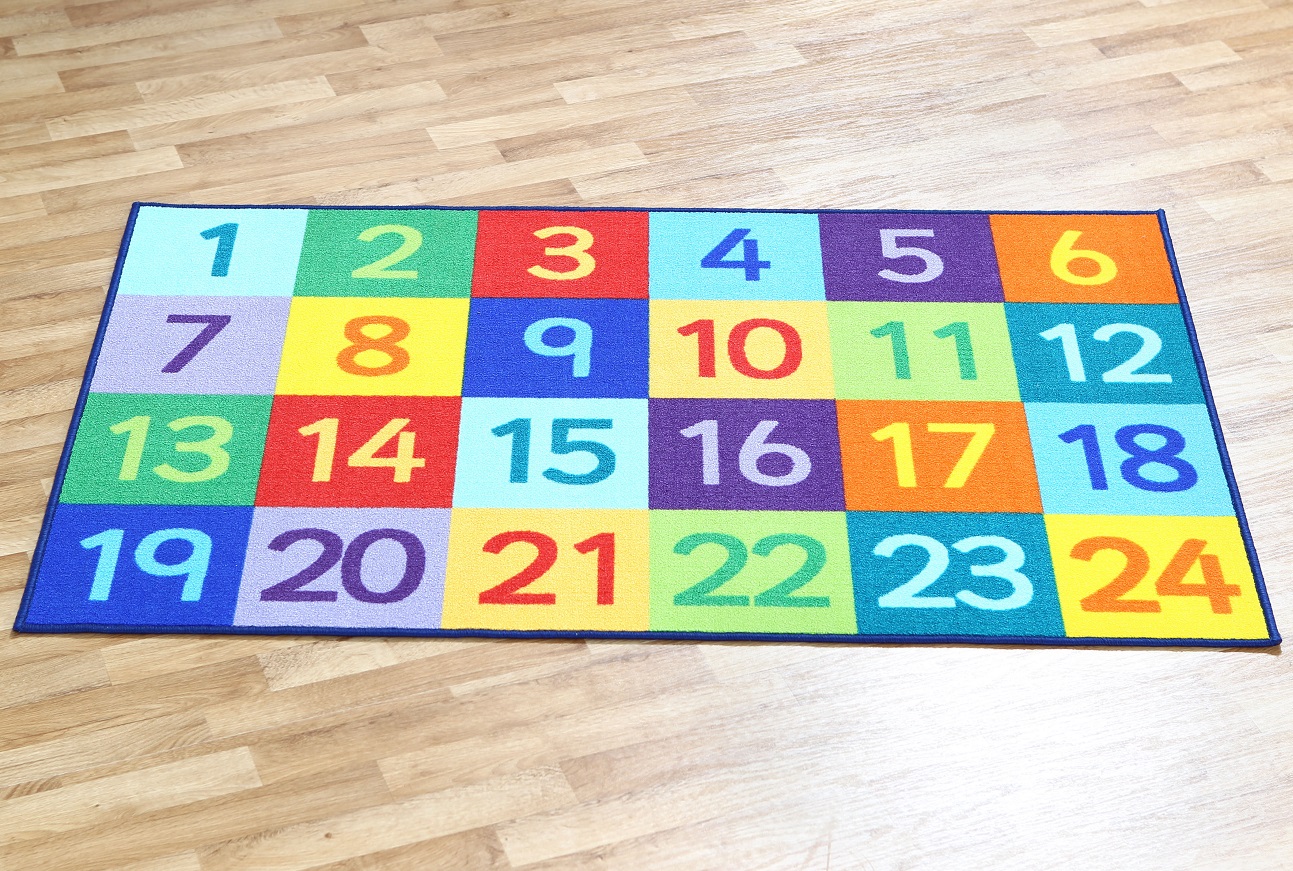 Un covor viu colorat de 1,5x1m, cu numere de la 1 la 24.