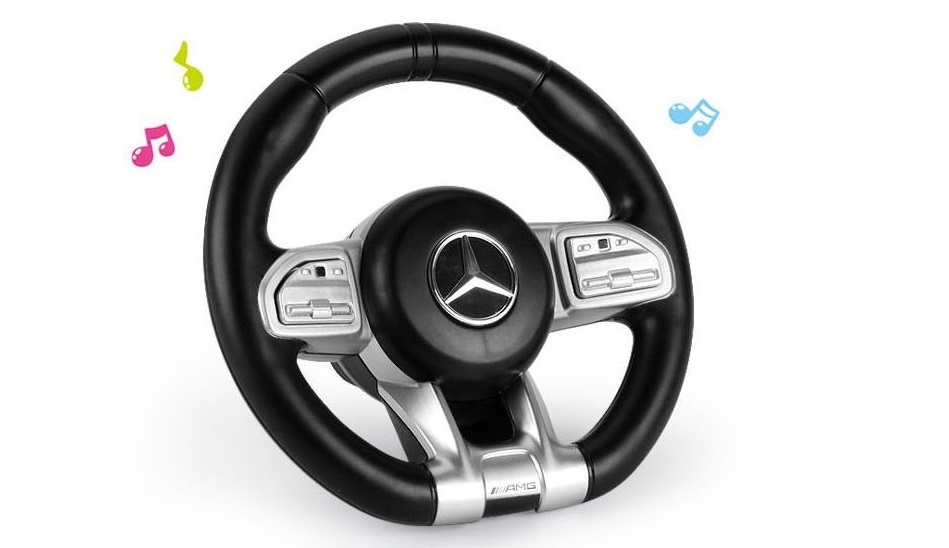 VOLAN MULTIFUNCȚIONALVolanul are butoane care activează claxonul, melodiile și LED-urile din luminile din față. Forma volanului seamănă cu cele reale găsite în mașinile sport, este special profilată astfel încât un șofer mic să o poată ține ferm. |