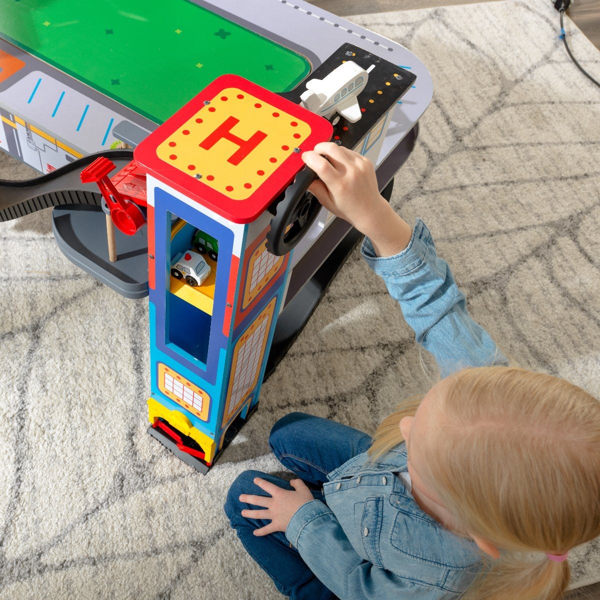 Distracția se ridică cu setul multifuncțional KidKraft Freeway Frenzy Raceway și masa de la KidKraft. Dispunând de o rampă mare, circulară, o placă de aterizare pentru avioane și un turn cu o macara rotativă, acest tren, avion și masa de activitate inspiră multe jocuri interesante. Ridicați capacul central pentru a descoperi depozitele ascunse foarte necesare. Răsuciți capacul și folosiți-l ca suprafață de cărămidă. Mașinile pot circula în jurul, în sus, în jos și chiar în marea dincolo. Atunci când mașinile au nevoie de un popas, pot parca în zona de depozitare laterală, păstrând suprafața liberă pentru joc gratuit. Inspirat de agitația unui oraș înfloritor, Freeway Frenzy Raceway Set are atât de multe niveluri și moduri de joc, copiii vor simți fiorul aventurilor urbane în anii următori!