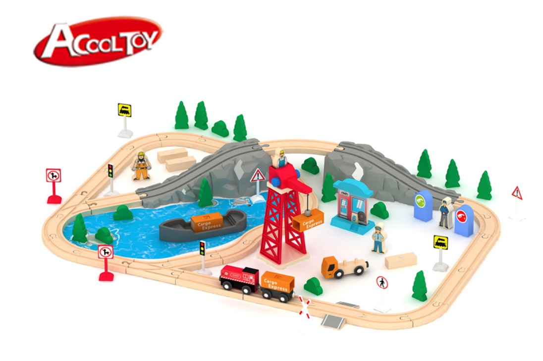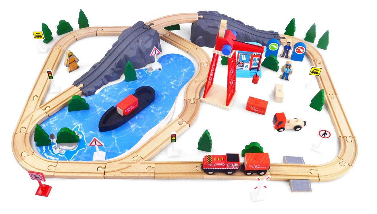 Produs: Set trenulet din lemn Port Cargo Express Rail Train - 80 piese