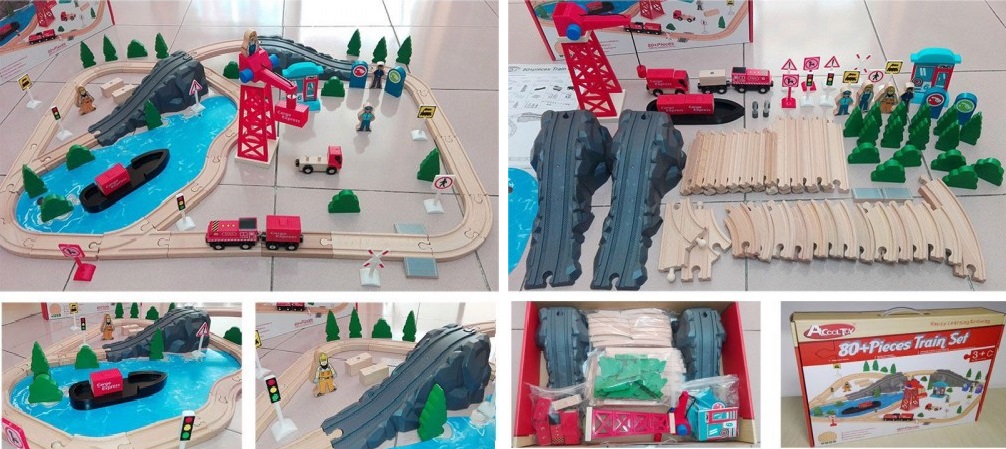 Setul poate fi extins cu sine, locomotive, vagoane si alte accesorii disponibile separat. Setul este compatibil cu alte marci si sisteme de sine din lemn.