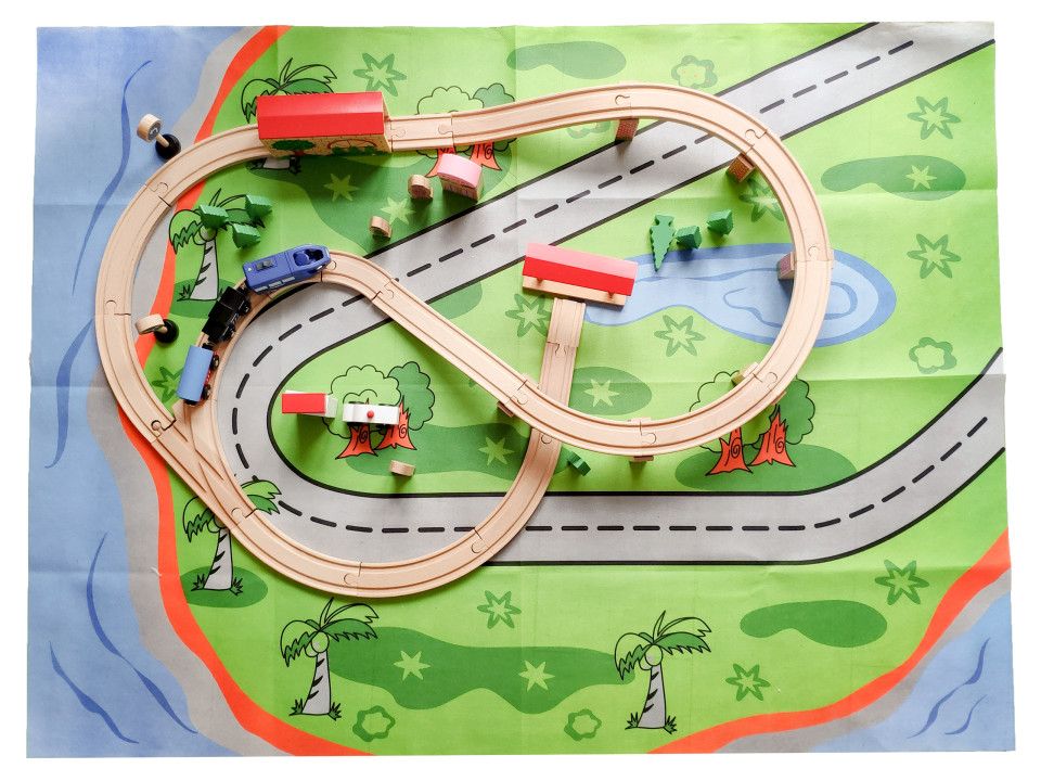 ♦ Întreagul set poate fi construit pe un covors cu diverse trasee un pesaj cu lac si zone versi cu o strazii aglomerate