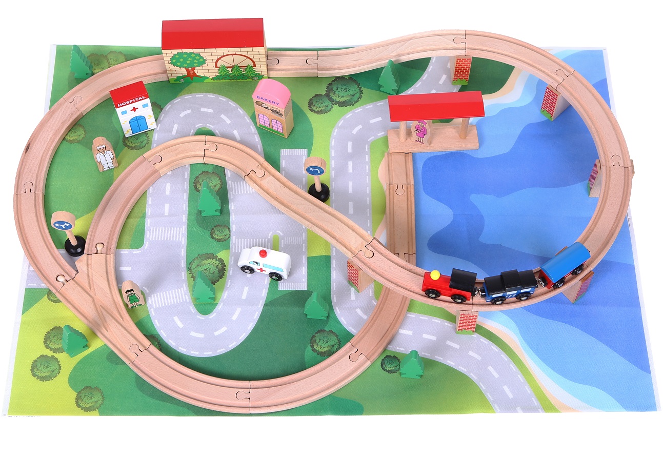 ♦ Setul include 50 de piese diferite iar sinele sunt realizate din lemn masiv