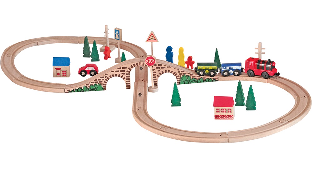 Setul poate fi extins cu sine, locomotive, vagoane si alte accesorii disponibile separat. Setul este compatibil cu alte marci si sisteme de sine din lemn.