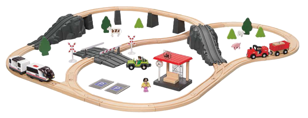 Setul poate fi extins cu sine, locomotive, vagoane si alte accesorii disponibile separat. Setul este compatibil cu alte marci si sisteme de sine din lemn.