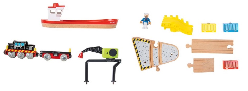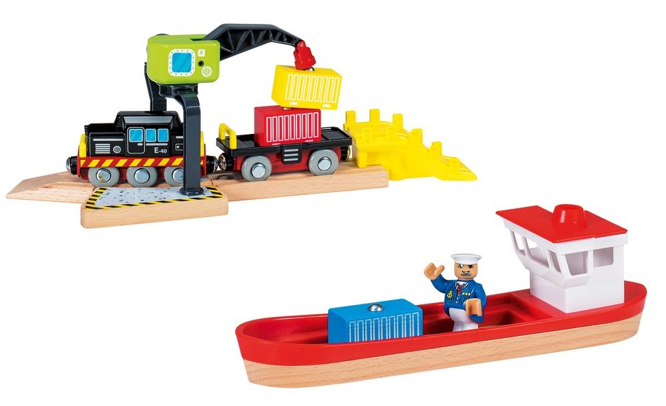 Set Port Trenulet Macara mare si Vapor cu containere 12 piese