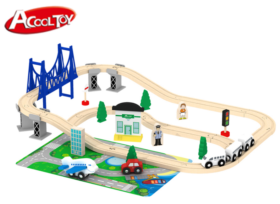 Produs: Set trenulet din lemn City Wooden Airport Train AcoolToy 44 piese