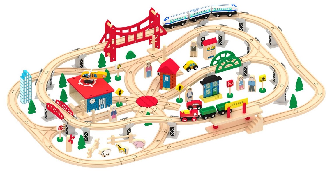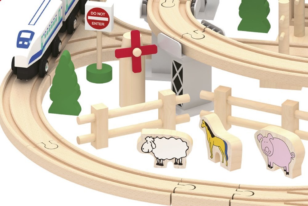Setul poate fi extins cu sine, locomotive, vagoane si alte accesorii disponibile separat. Setul este compatibil cu alte marci si sisteme de sine din lemn.