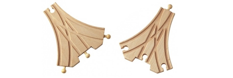 Ca trenurile reale, trenurile noastre trebuie să poată merge în toate colțurile orașelor. Cu acest macaz, toate tipurile de trenuri se pot deplasa spre stânga, spre dreapta sau rămân drepte și merg acolo unde au nevoie. Acest pachet conține două bucăți identice cu intrări și ieșiri pentru conectare. Orice trenuri se vor rătăci în toate direcțiile cu acest comutator. Dați trenurilor un sentiment de mișcare a unui milion de direcții diferite și lăsați-le să călătorească liber pe șinele de lemn.
