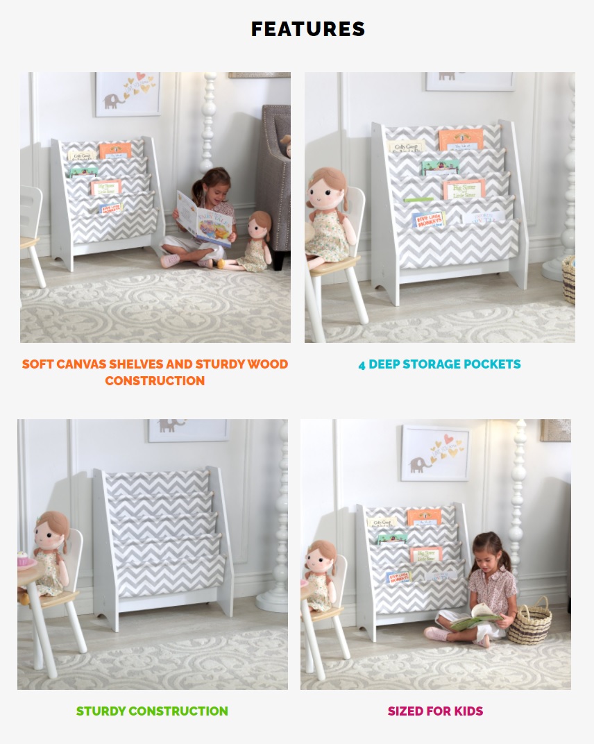 - Simplu și robust, raftul KidKraft Sling Bookshelf este o modalitate excelentă pentru micuții dvs. de a-și organiza cărțile.