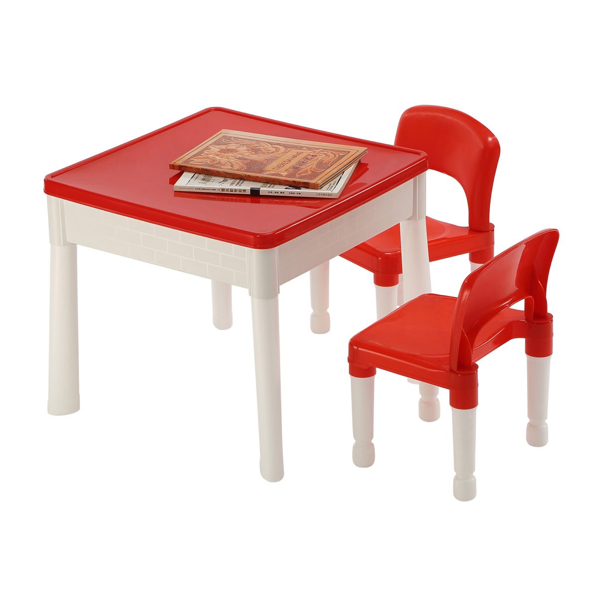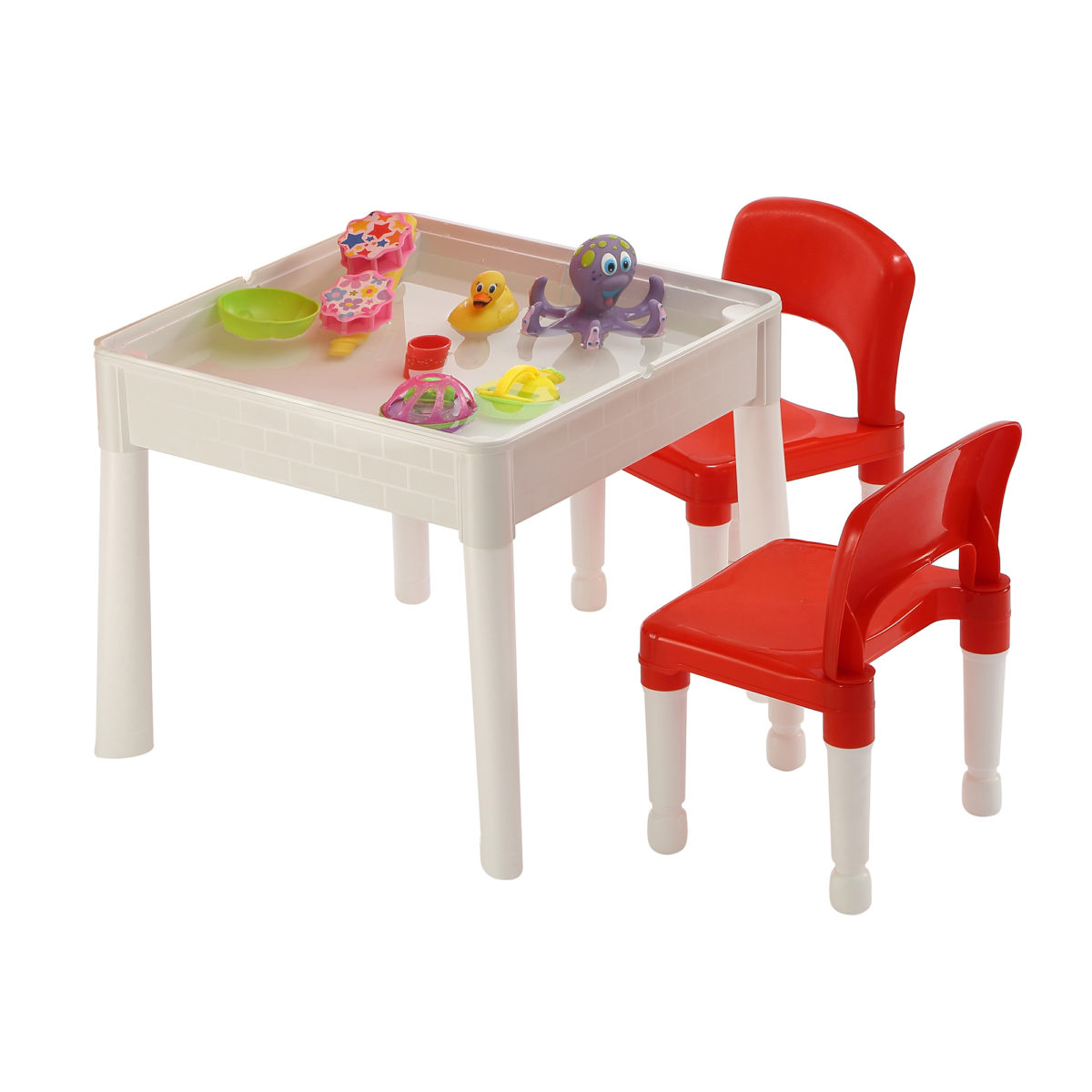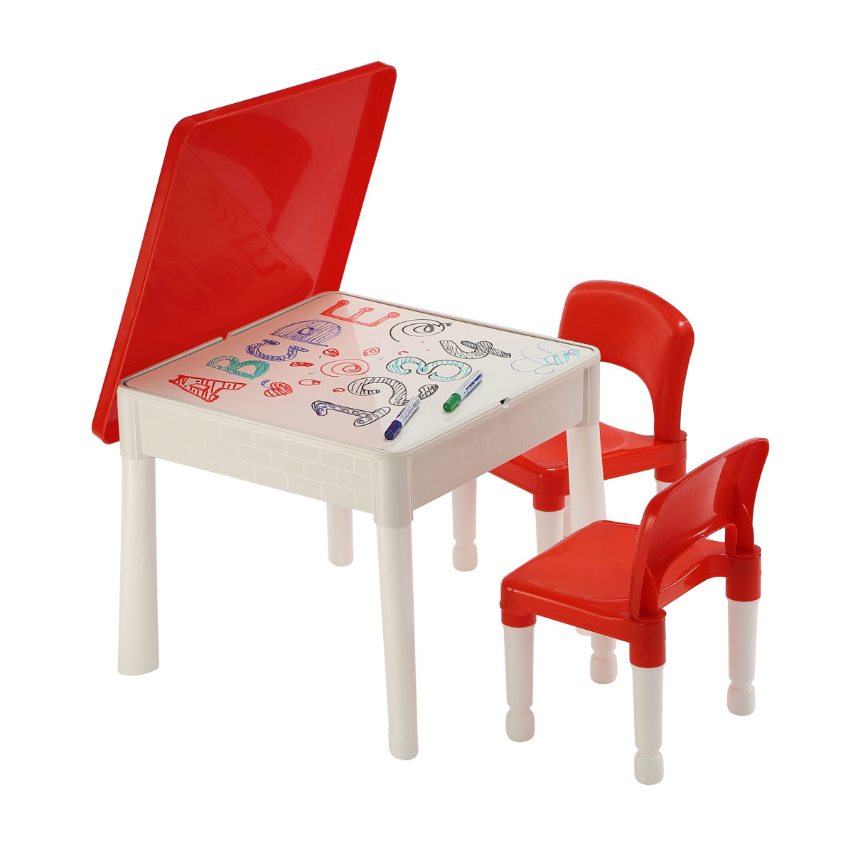 O masă de joacă polivalentă care combină atât stocarea, cât și activitatea și este ideală pentru copiii mai mici. Masa este prevăzută cu un blat de joc roșu (care acționează și ca o copertă) - oferind o suprafață netedă potrivită pentru masă și lectură și desen. Furnizat și depozitat sub partea de sus a jocului este o suprafață de cretă pe două fețe și ștergere uscată, perfectă pentru timpul artei și realizarea mărcilor. Pentru anii de început, practicienii realizarea marcajelor este o etapă importantă în dezvoltarea abilităților fizice și creative ale copilului. De asemenea, este o primă etapă importantă în învățarea scrierii. Zona de depozitare poate fi folosită pentru jucării, jocuri etc., dar este potrivită și pentru jocul cu nisip sau apă, ideal pentru dezvoltarea tactilă și senzorială a copiilor. Potrivit pentru utilizare în interior și exterior (dar suprafața uscată – tabla de scris ci cretă trebuie depozitată în interior).