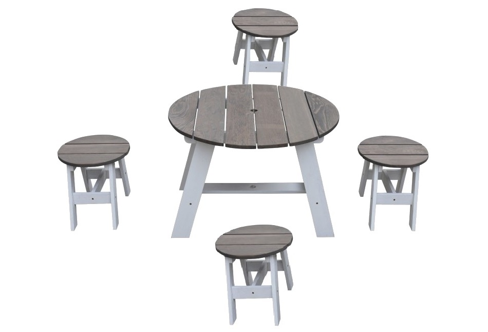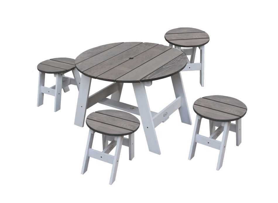 Produs: Masuta Copii Picnic de Interior sau Gradina - Rotunda Gri cu 4 scaunele din lemn pentru Activitati