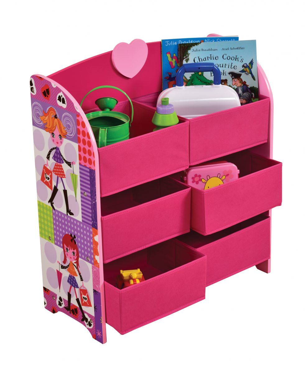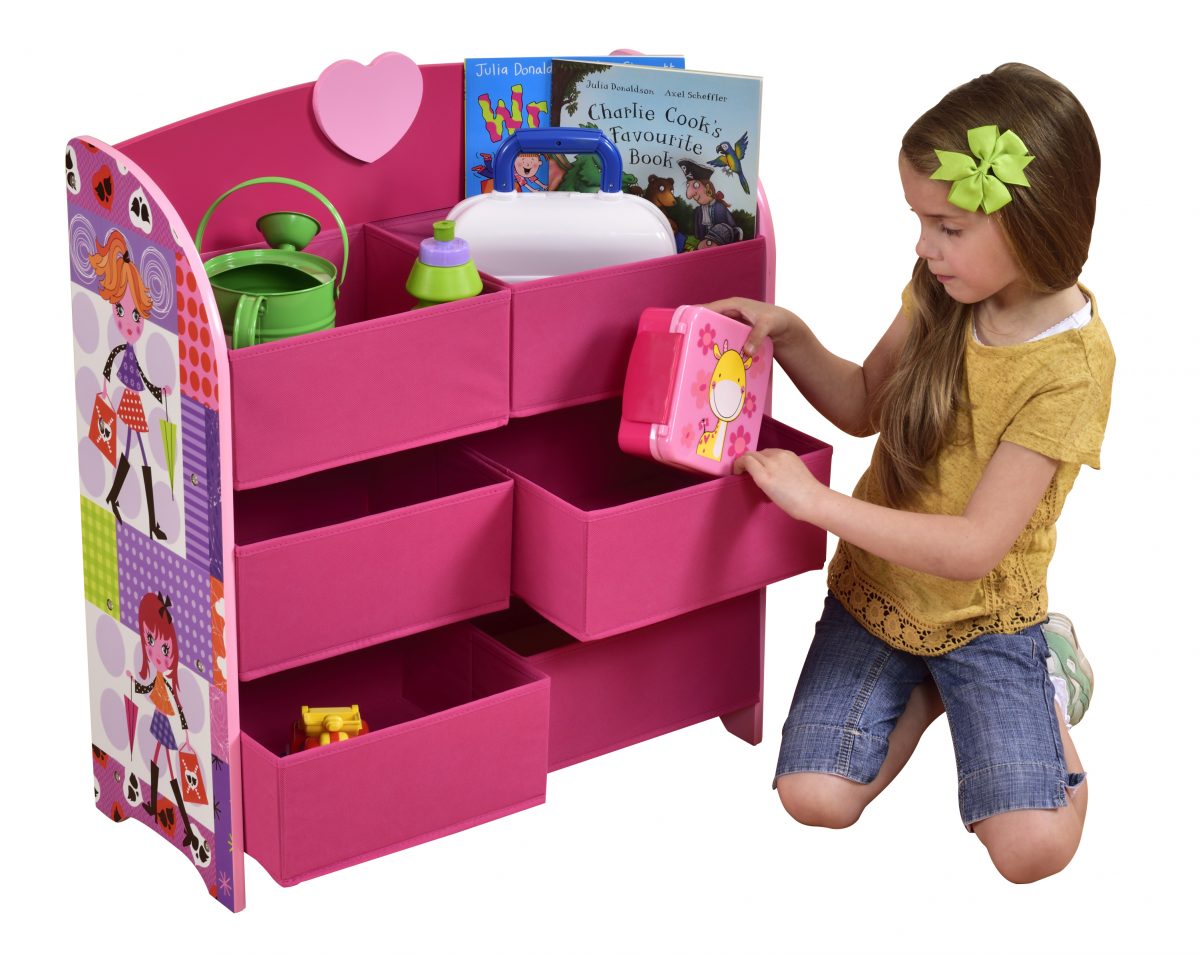 Produs: Biblioteca Etajera Fashion Girl cu 6 cutii din material textil si cadru din lemn MDF Liberty House Toys OnlyToys