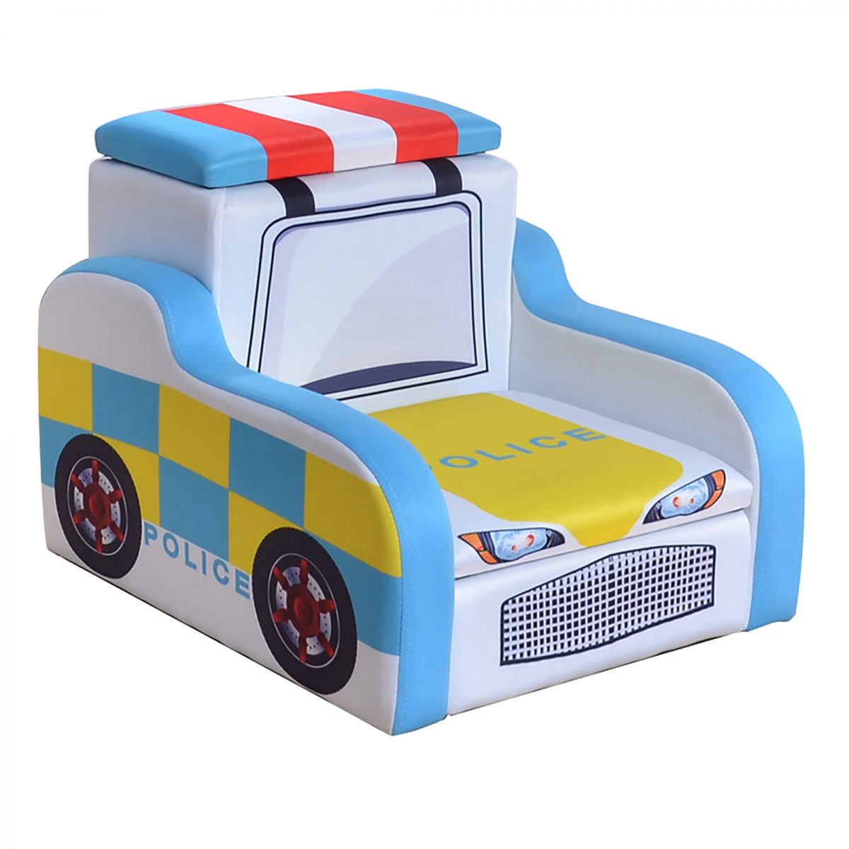 Produs: Fotoliu Masina de Politie din Spandex cadru de lemn si 2 compartimente de stocare Police Car Sofa