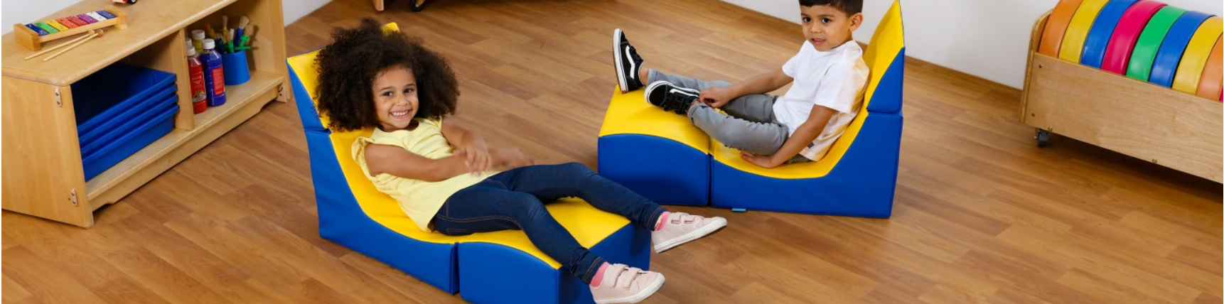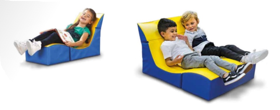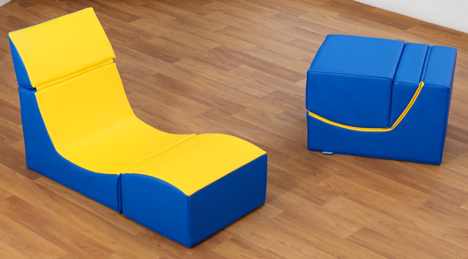 Sezlong Ergonomic pentru lectura copii Comfy Sofa din spuma poliuretanica - Ergo Vari cu soft touch rabatabil transformabil- Galben Albastru