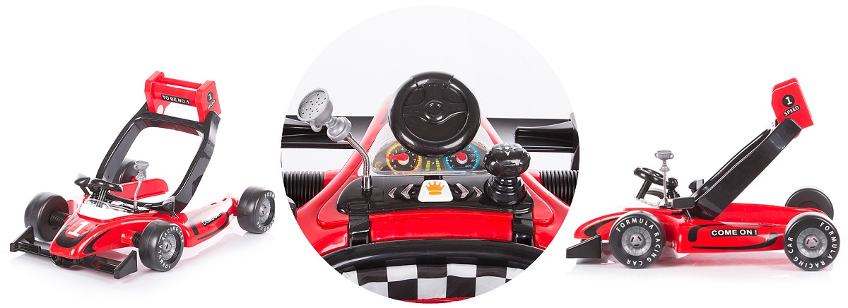 - Premergatorul Racer 4 in 1 incurajeaza copilul sa incerce sa-si faca primii pasi ajutand la dezvoltarea echilibrului si a coordonarii