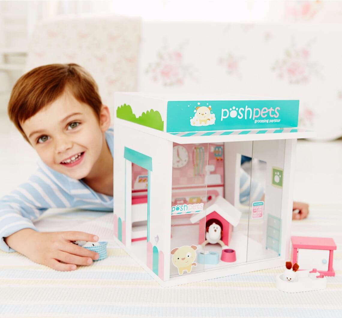 Magazinul Rosebud Pet Grooming Parlour are deschideri laterale, perfecte pentru mainile micute; permite, deasemenea, conectarea setului la alte seturi din categoria Rosebud facilitand astfel extinderea colectiei.